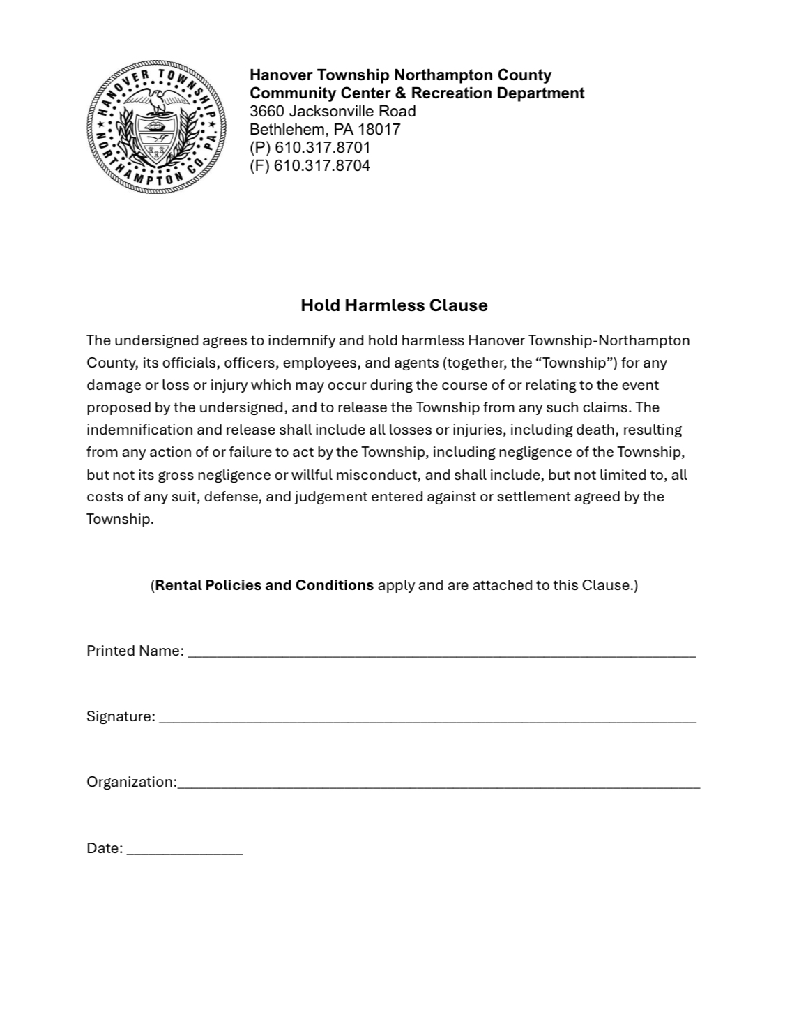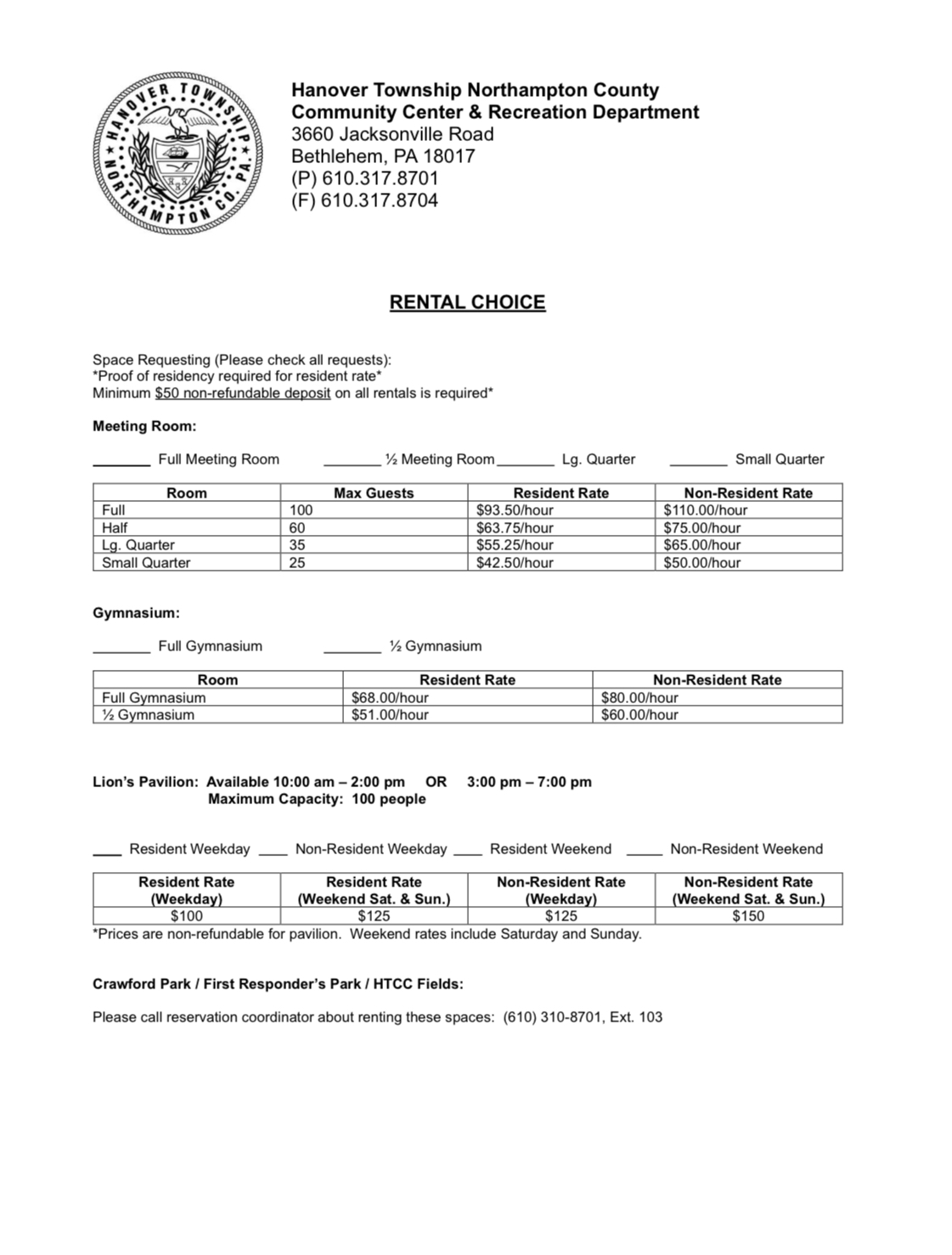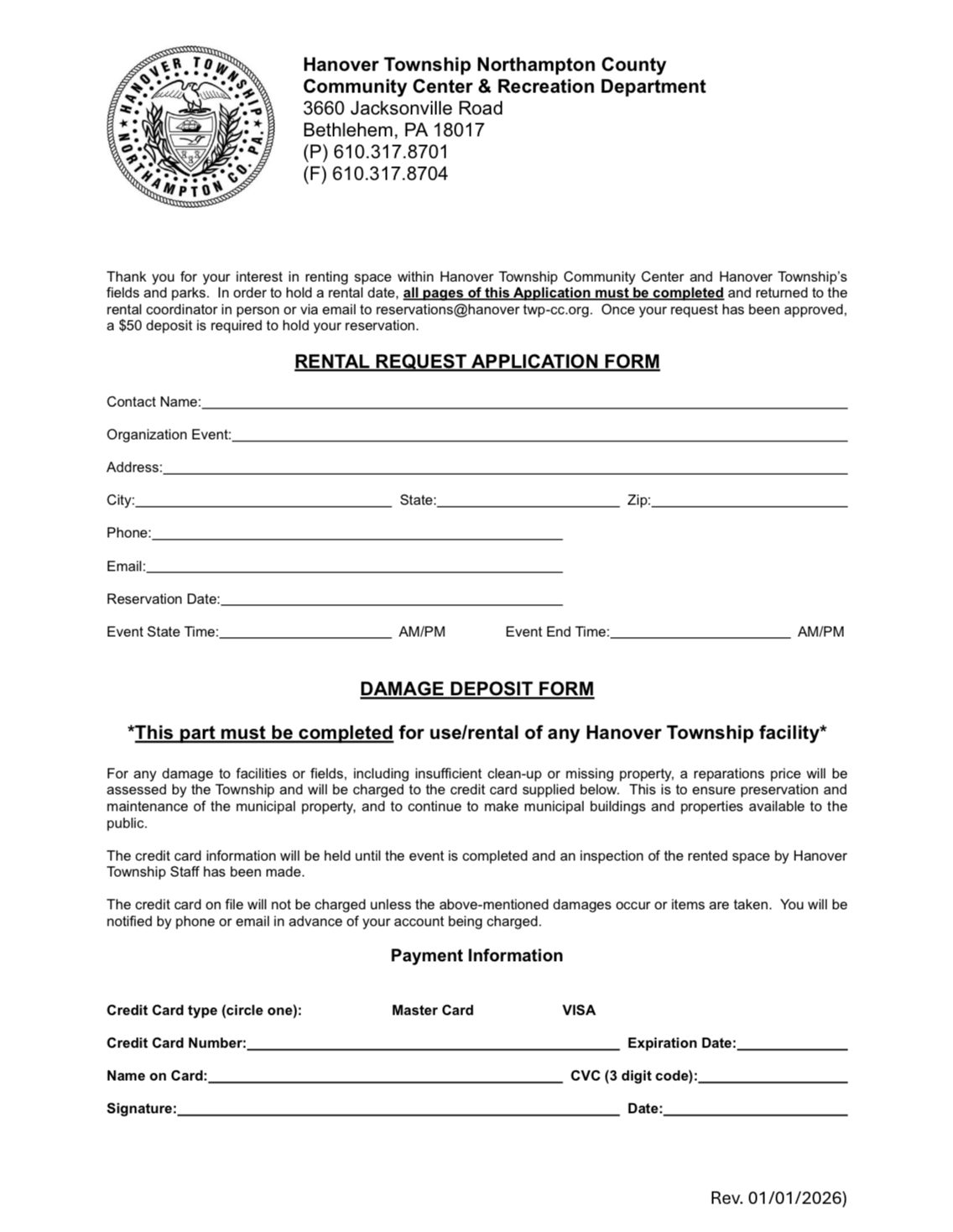 Completed forms can be emailed to reservations@hanovertwp-cc.org or dropped off at the center.